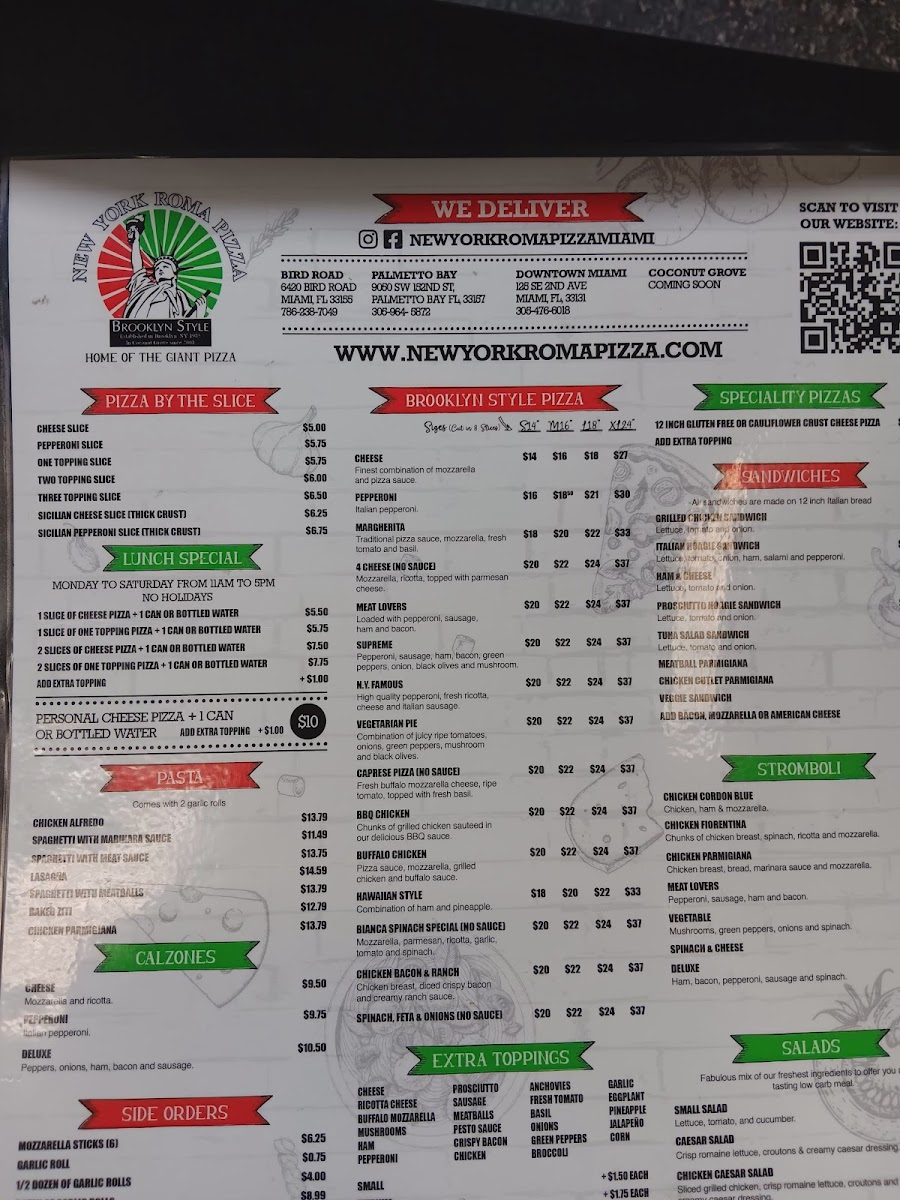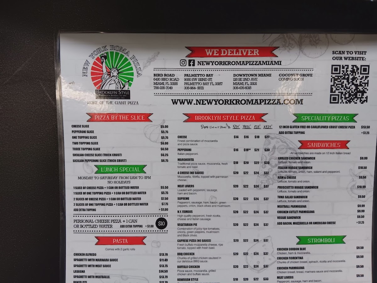 Welcome to New York Roma Pizza Drive Thru, a culinary gem located in Pinecrest, FL. This establishment specializes in delivering the authentic taste of New York-style pizza right to your car. The menu features an enticing selection of dishes that cater to every craving.